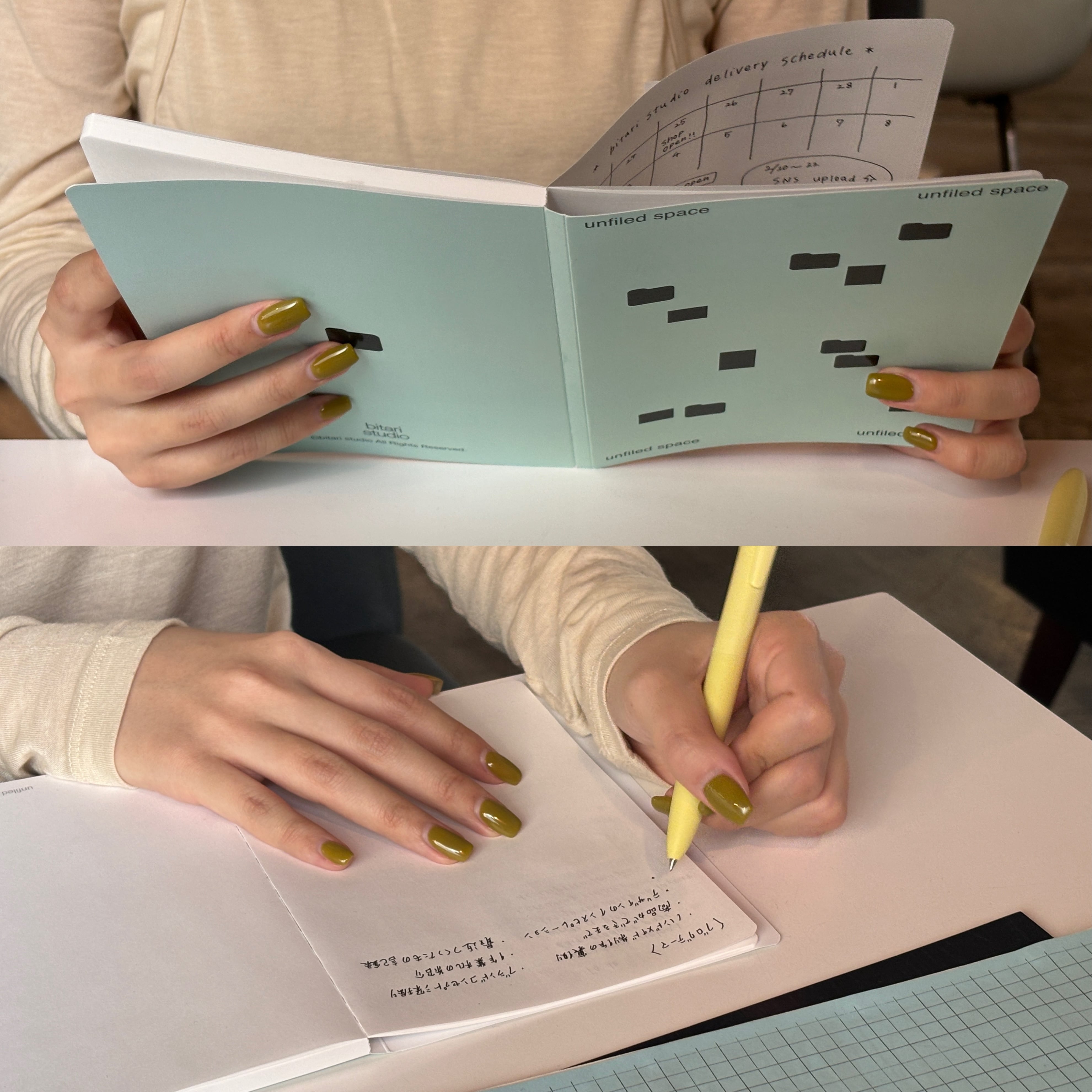日常の中で生まれる小さなメモやリスト、仕事のアイデア、カフェでのひとことまで。